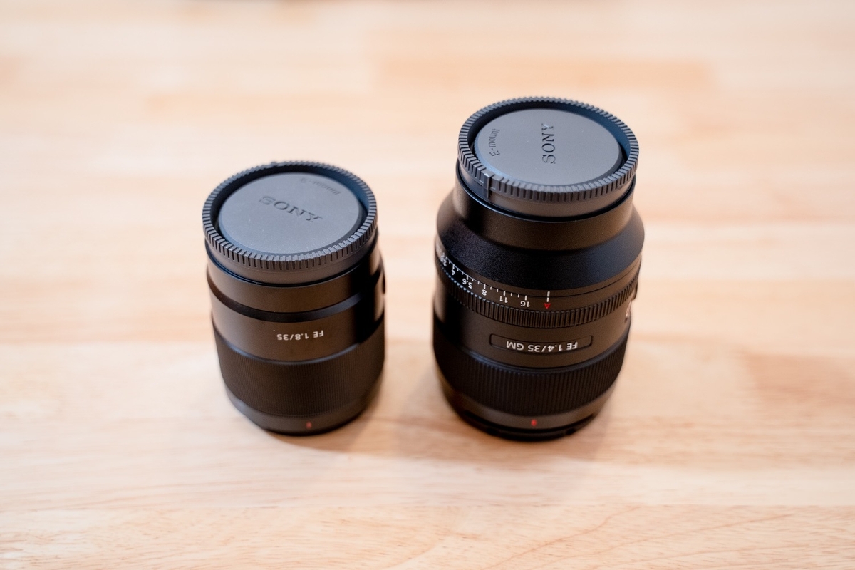 当然ではありますが、『FE 35mm F1.8 SEL35F18F』と比べると『FE 35mm F1.4 GM SEL35F14GM』の方はやはりやや大きめです。