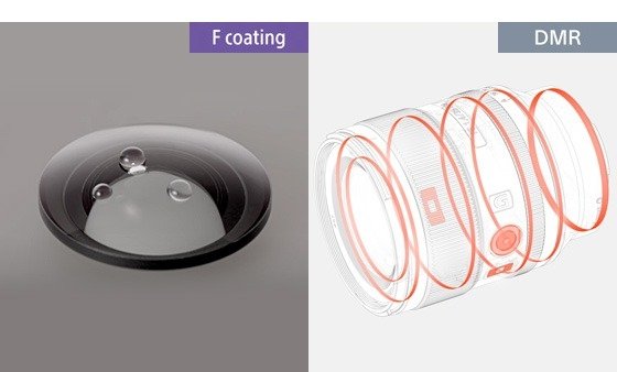 最短撮影距離0.27m(AF時)、最大撮影倍率0.23倍(AF時)の高い近接撮影能力を実現。レンズ最前面にフッ素コーティングを施し汚れ成分の付着を防止。