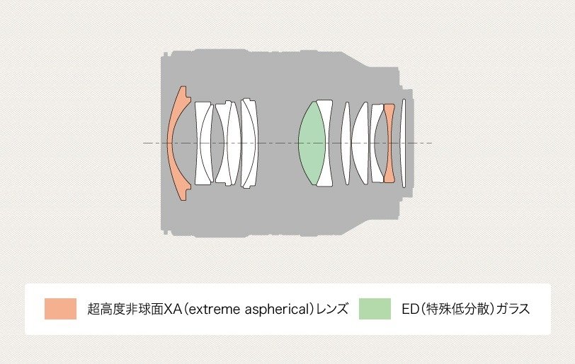 - 2枚の超高度非球面XA(extreme aspherical)レンズにより実現された画面全域での高い解像性能と点像再現性