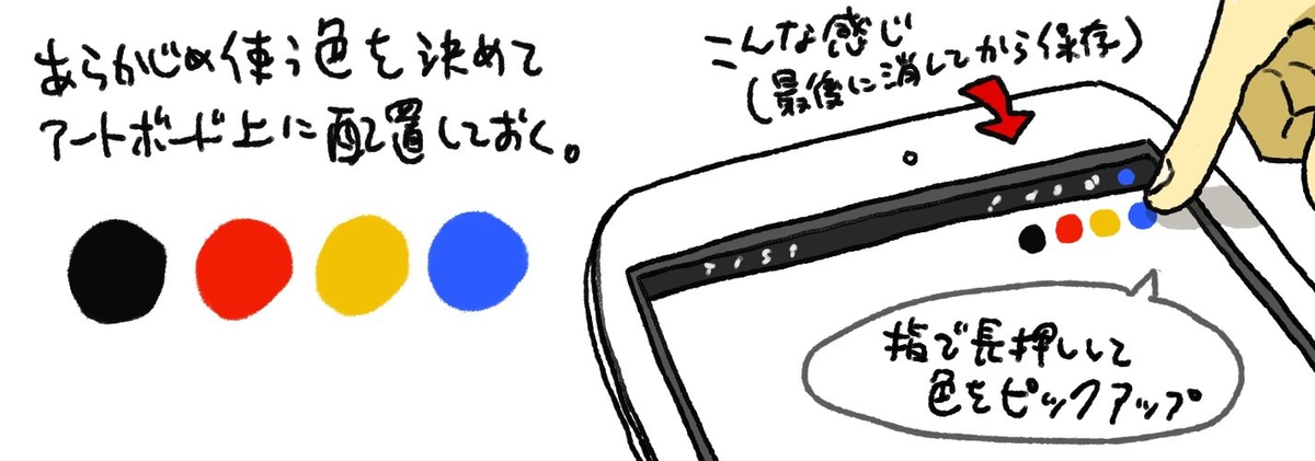 - 使用する色(あるいはメインカラー)をあらかじめ決めておき、パレットに登録 or アートボード上に置いておく