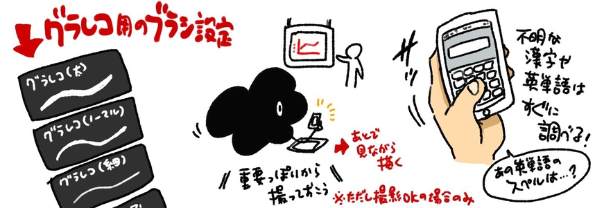 - タイトルやイラストなど、グラレコ前に用意できるものは先に描いておく
