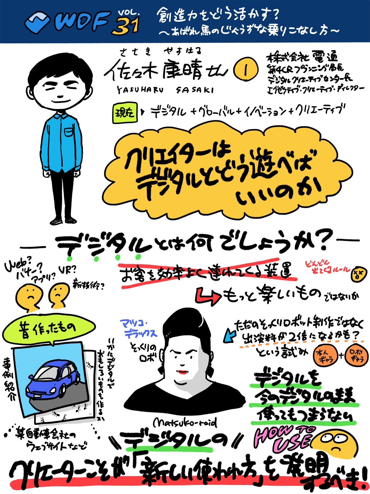 最近ではグラレコ=グラフィックファシリテーション*という認識が強い傾向にあり、グラレコはファシリテーションのためのツールである、という前提も踏まえておいた方がよいと思います。