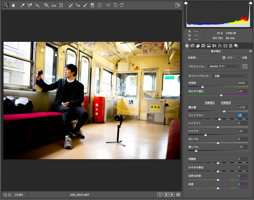 - Camera RawかLightroomで画像を開く(今回はCamera Rawを使用した方法を紹介をします。UIが違うだけで編集する箇所はLightroomと一緒です。)