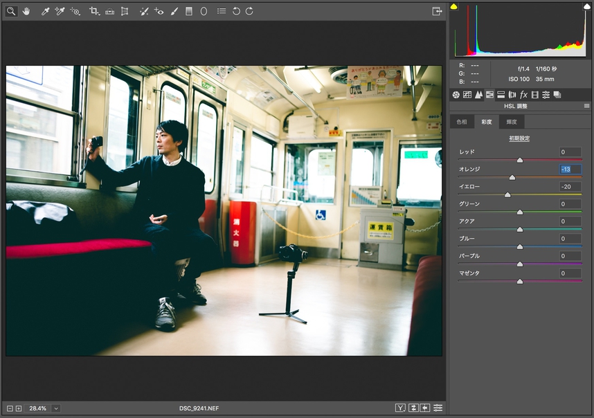 - ここまでの工程でオレンジとイエローが強く出ている場合、図のような感じで彩度を下げて調整する