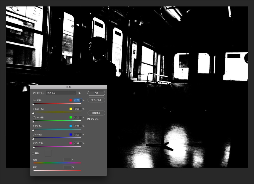 - 白黒・極端にしたレイヤーは非表示 or 捨てる