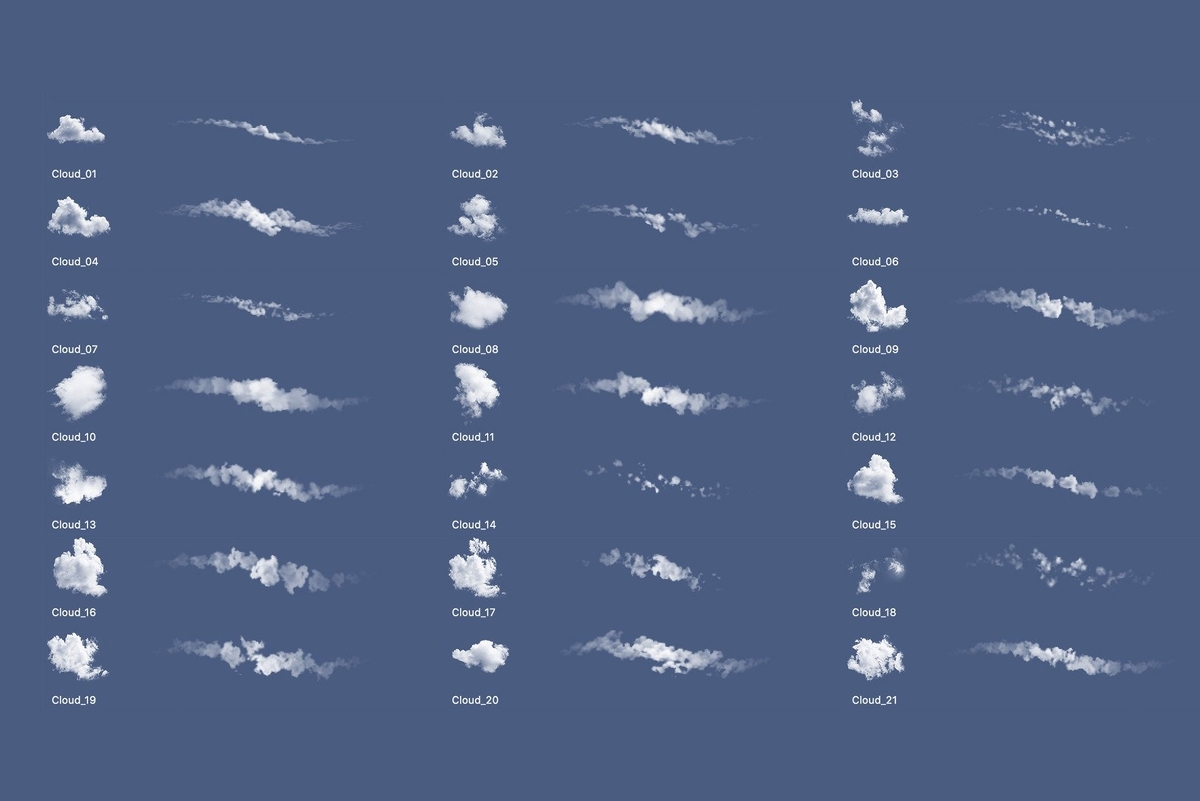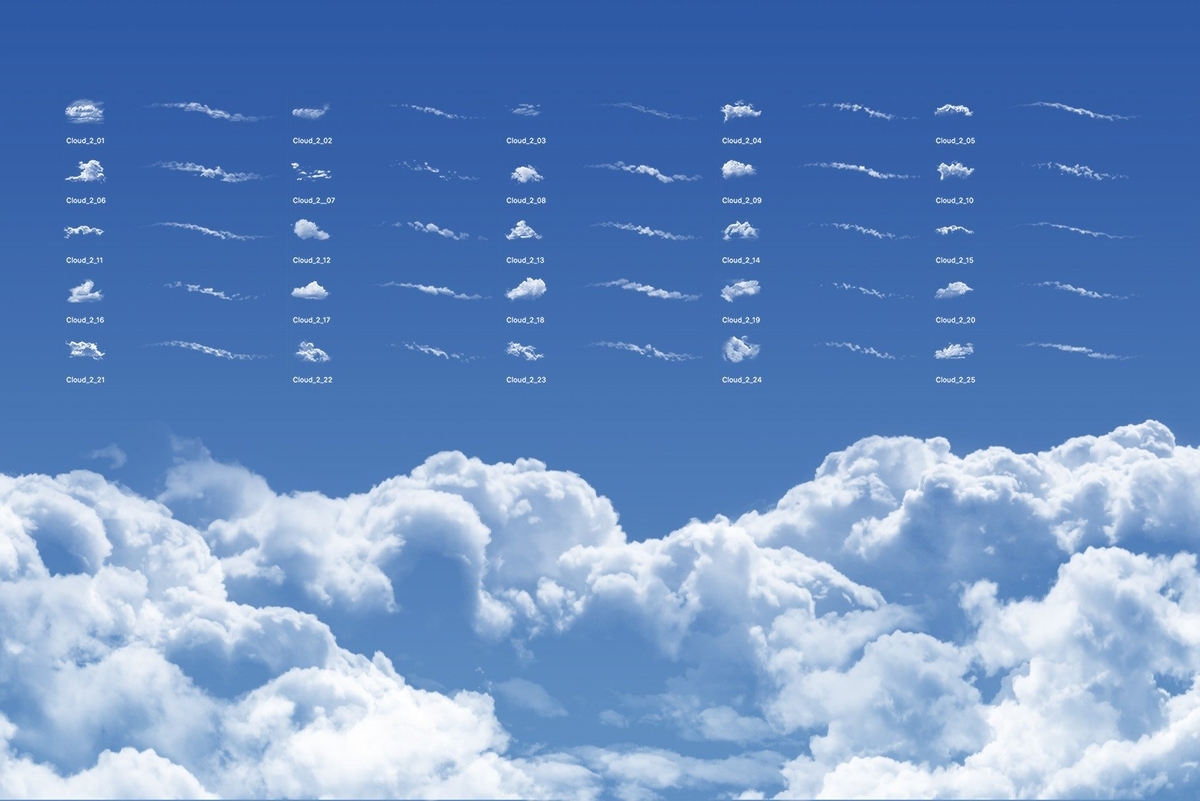 多種多様な雲ブラシがまとまっていて、雲を表現したい方にはこれ以上ないブラシセットです。