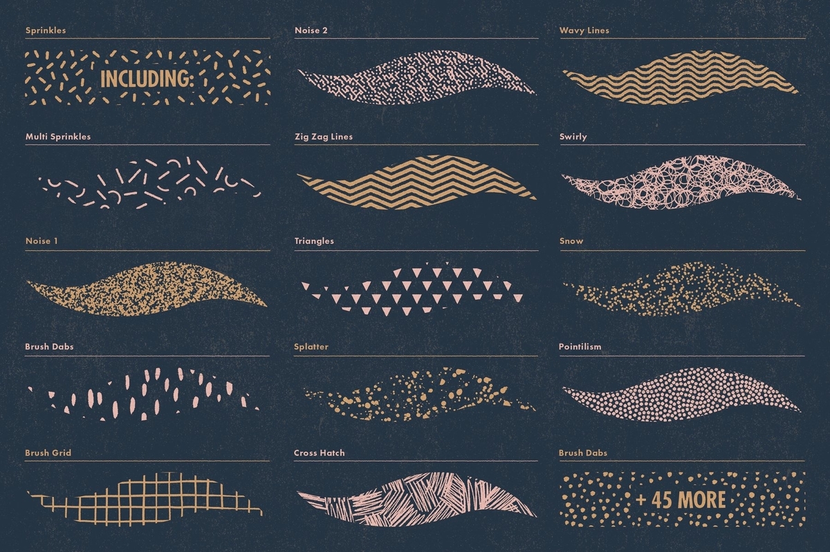 ドット、ライン系の他にも手描き風のテクスチャなどあり。