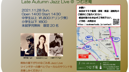 【ライブ情報】Late Autumn Jazz Live @ つむぎ庵 2021.11.28 Sun.