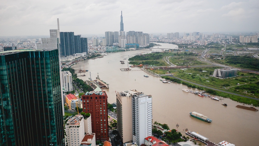 高いビルの上層部に展望デッキがあり、ホーチミン市内を一望できます。(有料)
