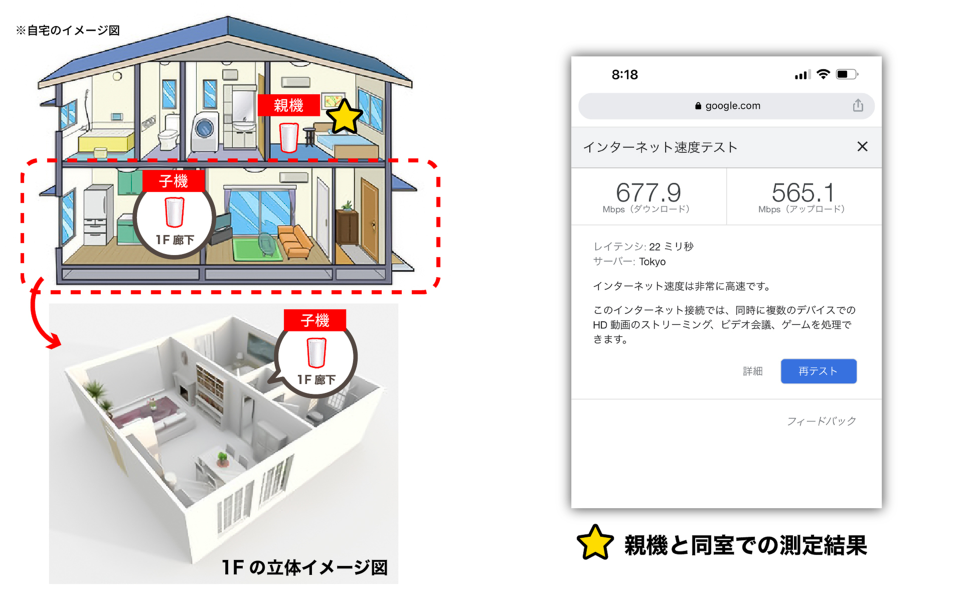 - 広い環境だと子機から離れるとやや接続スピードが落ちる