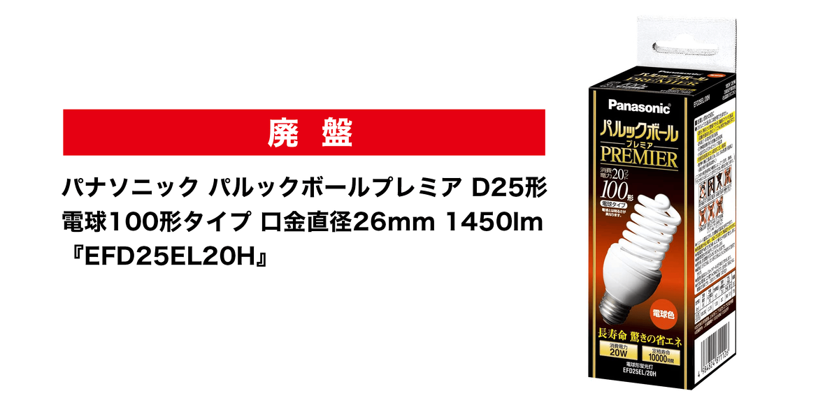 生産終了となったパナソニック パルックボールプレミア D25形 電球100形タイプ EFD25EL20H