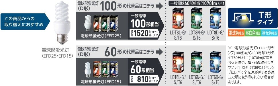 パナソニック電球 EFD25EL/20Hのオススメ代替電球・オーム電機 EFD25EL/18 と代替LED電球・東芝ライテック LDT10L-G/S