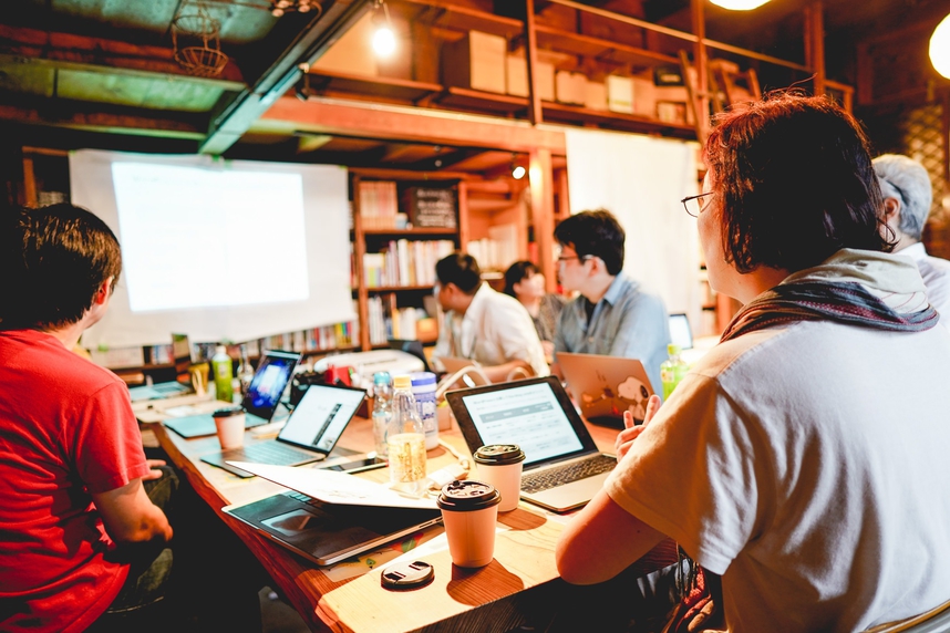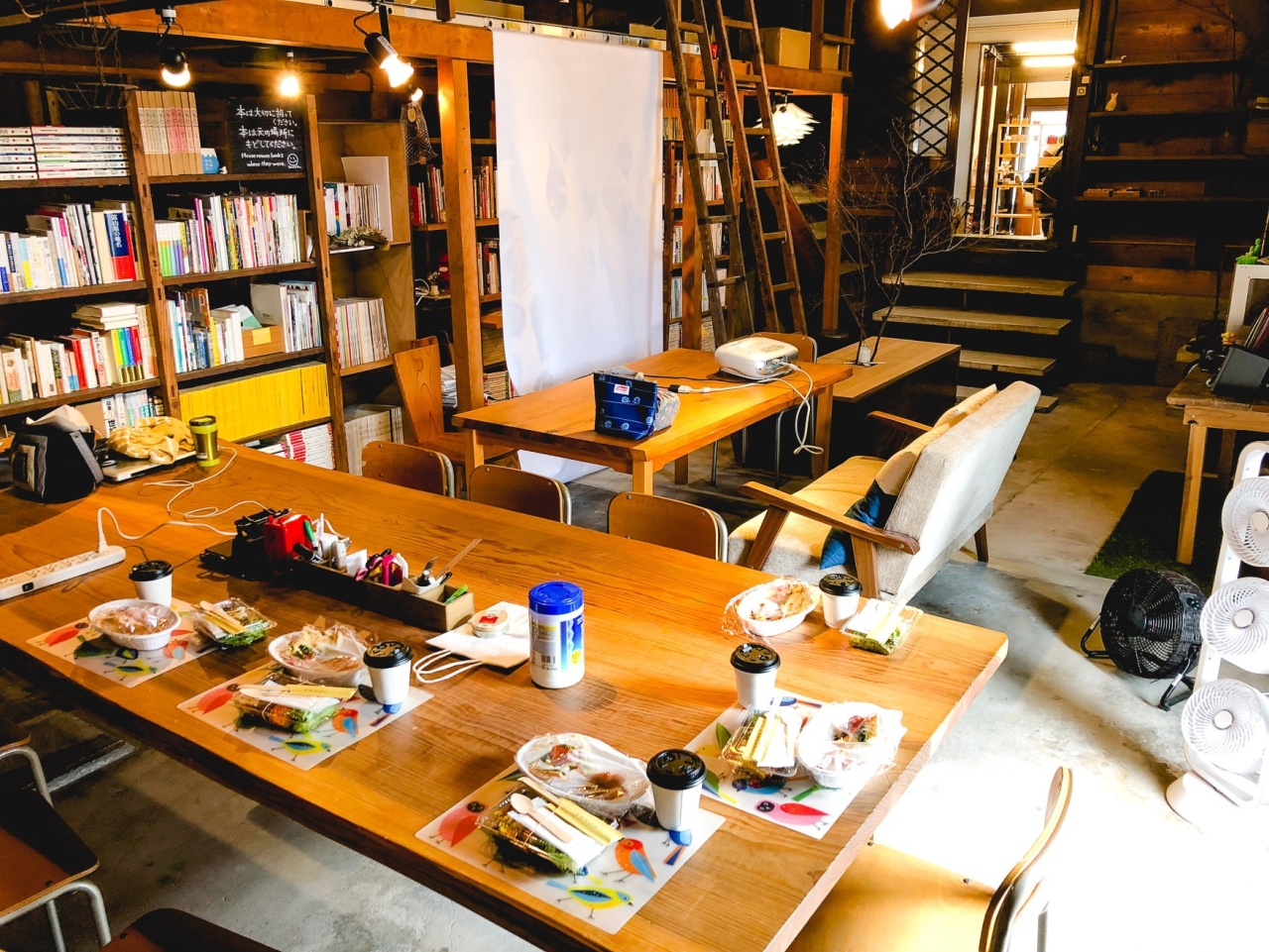 コワーキングスペースのようなカフェのような、オシャレスペースでの開催で(会場のはんぶんこさんは『モノづくりを軸にした複合施設(プラットフォーム)です。』と紹介されています。)、賑やかで楽しい勉強会となりました。