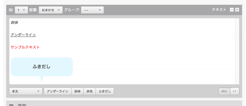 ↑とりあえずハンズオンで試してみた新しいテキストユニット。編集・作成中のユニット内でCSSやタグの内容が反映されてわかりやすくなっています。